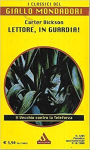 “Ma non credo, signor Constable, che voi cenerete stasera”. L’altro si rizzò nella poltrona. “Non cenerò? Perché diavolo non dovrei cenare?”. “Perché non credo che a quell’ora sarete ancora vivo” disse semplicemente Pennik. E Pennik è il personaggio su cui ruota Lettore, in guardia! di Carter Dickson, Mondadori 2008.