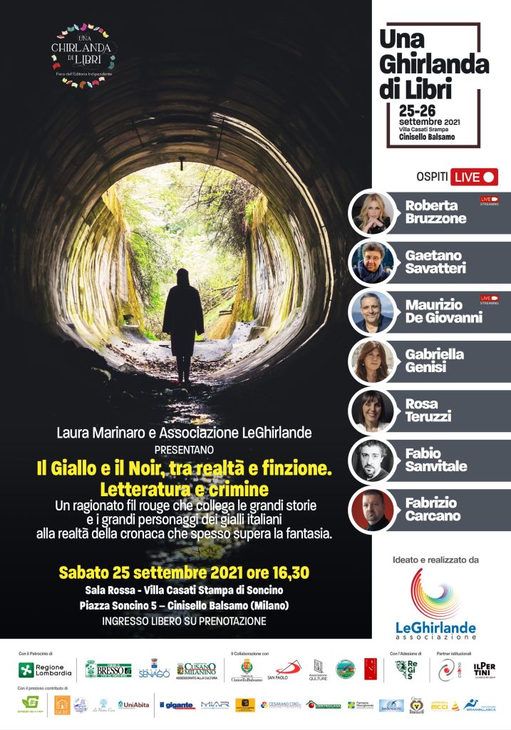 Nel pomeriggio di sabato 25 settembre si terrà la tavola rotonda ideata e condotta da Laura Marinaro, giornalista e scrittrice di cronaca, dal titolo Il Giallo e il Noir, tra realtà e finzione. Letteratura e crimine. Un fil rouge che collega le grandi storie raccontate e i grandi personaggi dei gialli italiani più noti e rappresentati sul grande e piccolo schermo, alla realtà della cronaca che spesso supera la fantasia. Tra i presenti a parlarci del loro lavoro e delle loro ultime fatiche ci saranno Roberta Bruzzone, Gaetano Savatteri, Gabriella Genisi, Rosa Teruzzi, Fabio Sanvitale, Fabrizio Carcano e Maurizio de Giovanni.